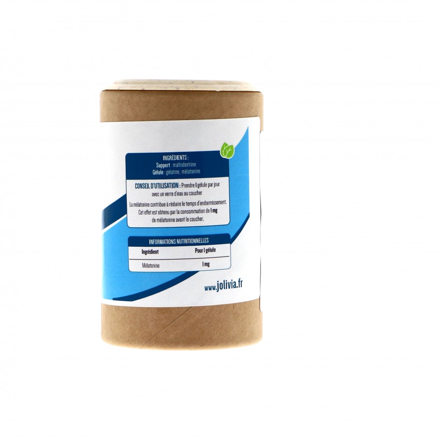 Conditionné en pots de 180 gélules (mélatonine dosée à 1 mg par gélule).