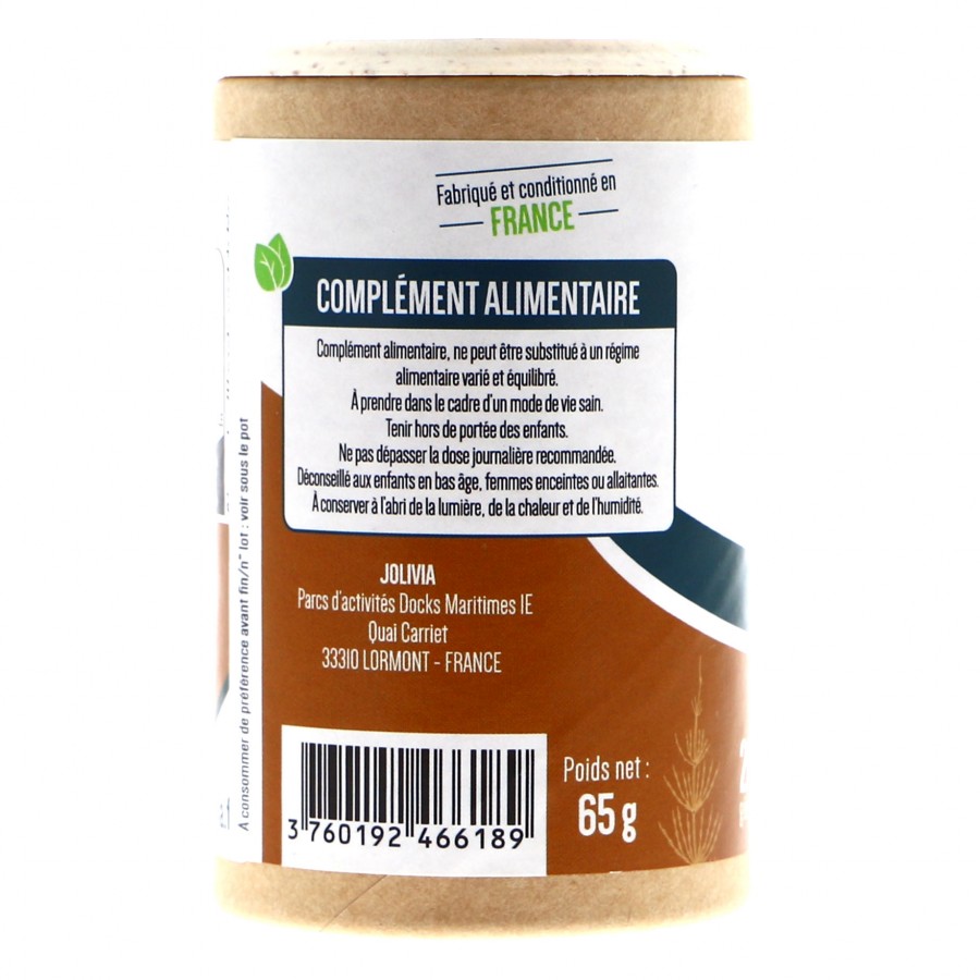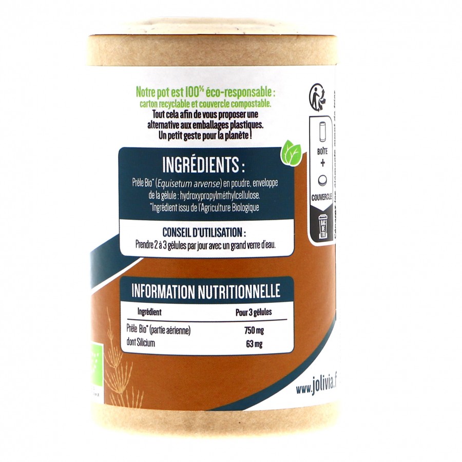 Prêle bio* poudre parties aériennes (Origine non UE), enveloppe de la gélule : hydroxypropylméthylcellulose.