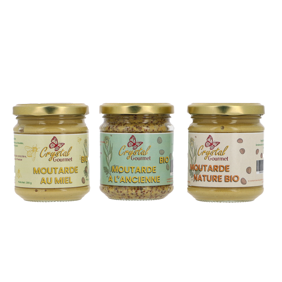 Lot de 3 Moutardes Bio : nature, à l'ancienne et au miel