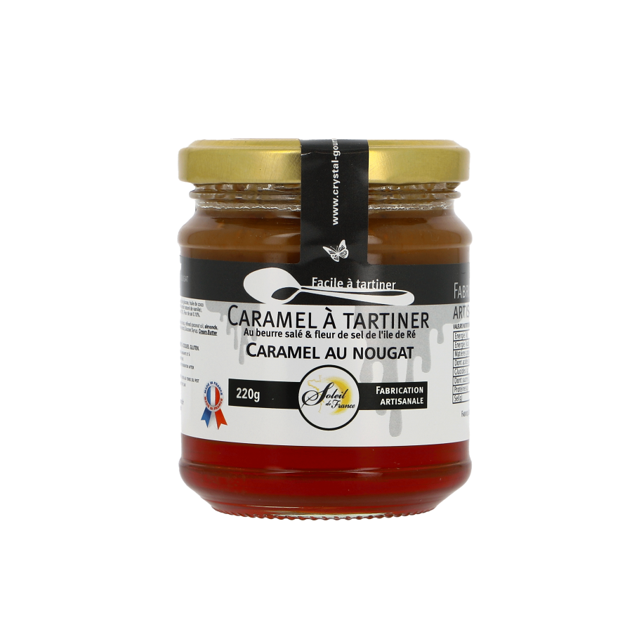 Caramel à tartiner au beurre salé Nougat de fabrication artisanale. Pots de 220g.