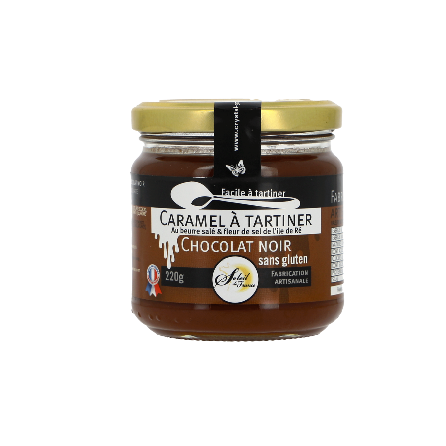 Caramel à tartiner au beurre salé Chocolat noir de fabrication artisanale. Pots de 220g.