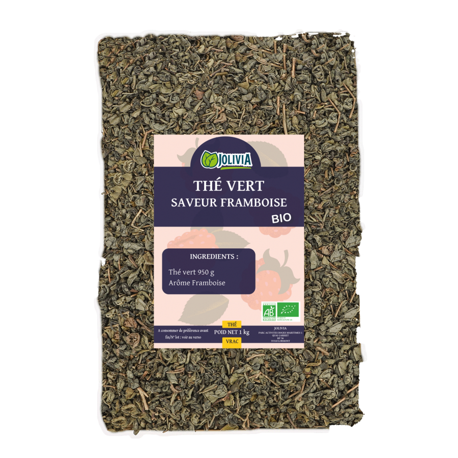 Thé vert Bio saveur Framboise conditionné en sachet de 1 kg.